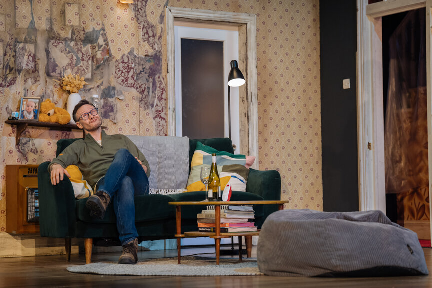 Talking of the set, designed by Anna Fleischle and reading the programme about how many layers of wallpaper line a typical wall in a room in a house and how over the years and each layer could tell a story about previous owners, A PIR light switches on outside the patio doors and often screaming Foxes add to the atmosphere. A chilly evening appears outside, foggy mist floats about as Ben goes out for a cigarette. Along with occasional thunder and lightning all adds to the spooky atmosphere. The unique way in which scenes are changed keeps us on our toes and ripples of relief, as a scene ends and we gear ourselves up for the next and slowly we edge closer to 2:22!