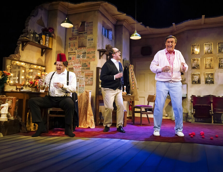 Watching three comedy icons sitting in the same dressing room but waiting to go on three different theatres is so humbling, their vulnerability. Their worry about the audience not laughing. The conversations between each character shines with wit and suitably excellent timing. It is an incredibly nostalgic show, transporting us, the audience back to a time where successful mainstream comedy was non offensive, where the whole family would gather to enjoy the fun together. It was amazing to think that these three, among others past have had on today’s comedians was so easy to see.